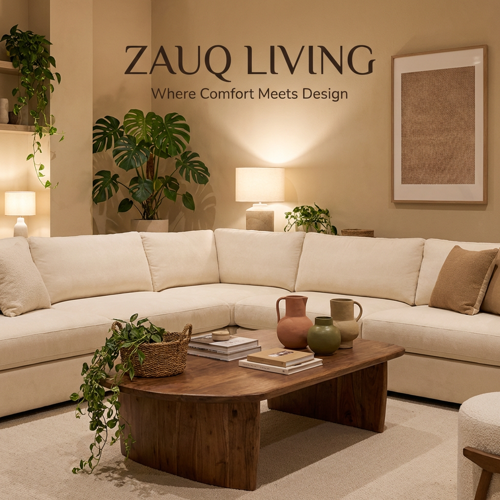 Zauq Living is a Lahore-based sofa brand focused on delivering modern, durable, and comfortable seating solutions for Pakistani homes. We design L-shape sofas, 6-seater sofas, curved sofas, and contemporary living room furniture that blends elegance with functionality.